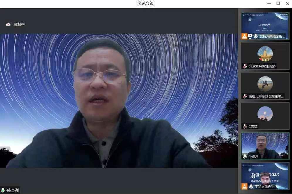 李晨阳校友介绍了航空航天公益科普冬令营的初衷与组织情况。他表示,“我们一如既往地希望给全国各地的大小朋友们打开一扇走进航空航天世界的门,让大家在科普活动中既获得知识,又找到榜样,感悟我们国家从一穷二白到拥有自己的卫星导航系统、创造成功探月探火的一系列里程碑事件的不容易,从航空航天人身上汲取成长的力量。”他还表示此次冬令营发布之后在南航校友圈和家长圈得到了积极响应,2天时间共收到报名问卷334份,2/3是10-14岁的同学,南航校友的“航二代”们占比21%。