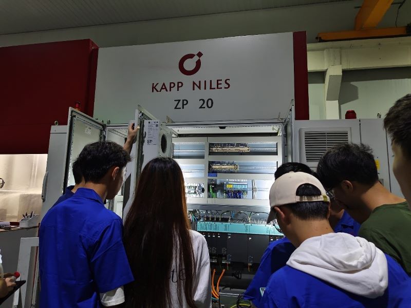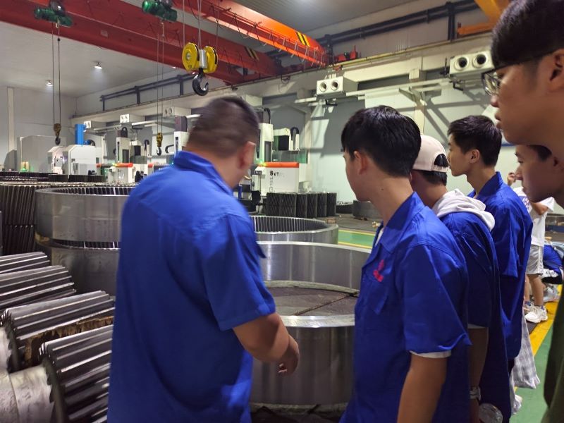 在负责人的介绍中我们了解到企业负责齿轮的生产,列如大生产器件的齿轮,和风力发电机上面的齿轮的生产。这整个过程中,企业相关负责人带领队员们参观了各生产车间,并逐一讲解其工作的方式和生产的产品。同时让我们了解到,一个齿轮的生产并不是想象中那么简单,其工序繁琐且精密,需要工人们有充足的知识基础,还需要掌握熟练的操作技能。