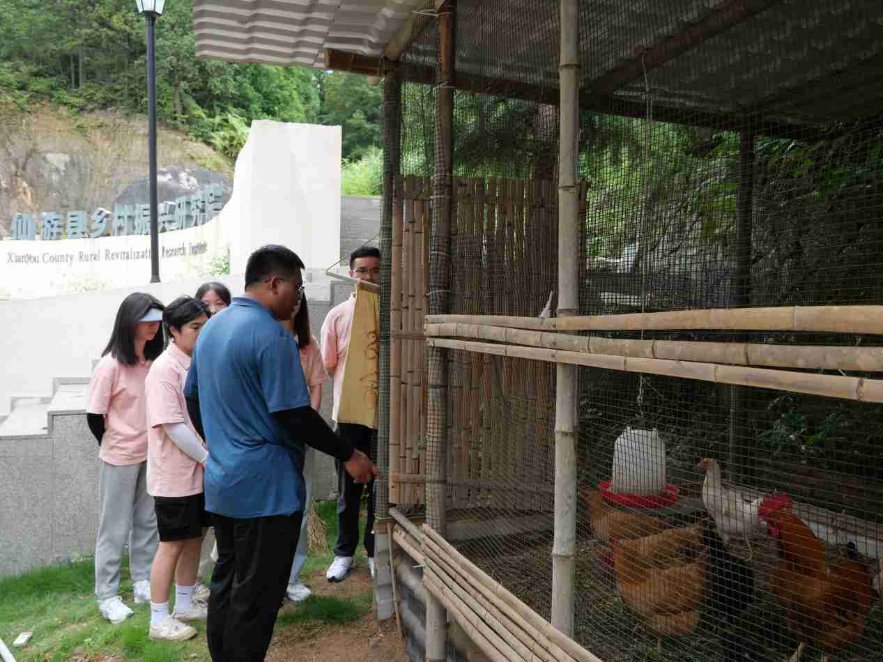 交流结束后,实践队先后参观了乡村振兴研究院的庭院养殖、公益反哺的的乡村振兴农特柜、无臭无味无污染的发酵床养鸡技术等“黑科技”。在庭院养殖,宽敞明亮的庭院内,特色农场品一览无遗,一颗颗“嘉宝果”生机勃勃;公益农产品柜罗列着具有莆仙特色的系列农作物成品,每一次购买都会捐出0.3元到“乡建资金”助力乡村建设。