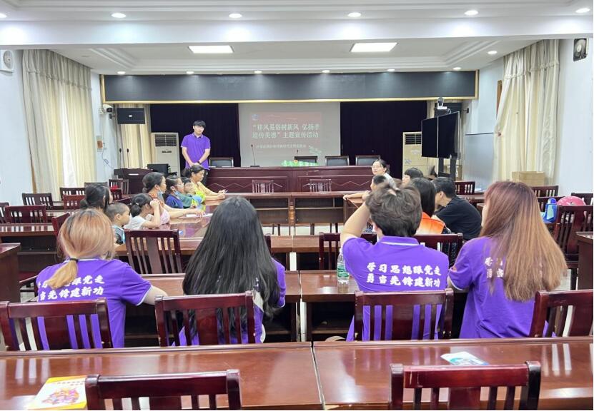 (图为6月26日“红砖筑常熟,青春‘逐’农行——红壤育熟科”成员赵延斌在社区中心宣讲结束后与小朋友和家长们的合影。季文杰供图)
