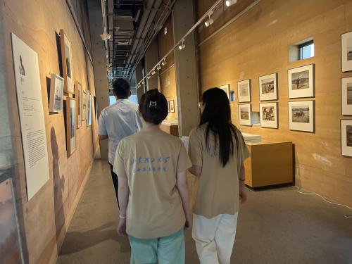 在工作人员的带领下,实践团成员们进入游客中心二楼进行参观学习。游客中心二楼有着黄河口摄影艺术展,展示黄河口的湿地文化,便于来来往往的人们感受湿地风光。在艺术家的眼中,照片是最能表现黄河的一种艺术形式。黄河落天走东海,万里写入胸怀间,队员们在参观学习过程中对黄河之美不住赞叹。摄影师们除了从不同的角度捕捉黄河之外,也记录下了母亲河上的人民生活之艰辛,成员们不禁对当下的美好生活的来之不易有了更为深刻的理解。