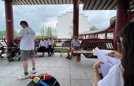 在与中心工作人员的交谈中,实践队员们进一步了解到,这里的老人大多是五保户,家中亲人凋零,每月靠着政府资助和低保维持生活支出。得知这一消息后,实践队员们的感悟又深了一分“最开始这次活动之于我,是用专业为老人们画一幅画,对我而言更多的是对绘画功底的检验与实践,当我知道这些老人们的情况后,不觉间手中画笔的分量就重了起来,关爱与陪伴的想法大于炫技,我画出来的也不简单是一幅幅肖像画,而是现实生活里的老有所养、老有所养。”