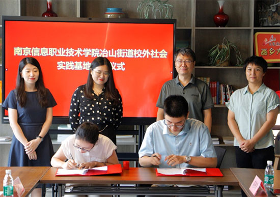 座谈会中,与会人员就冶山街道的发展特色、实践机会、非遗文化与文旅融合以及科技人才互通等事项展开交流讨论,同时签订校地合作协议,揭牌共建南信院大学生社会实践基地,在社会实践、学术研究、艺术乡建等方面达成一致共识。