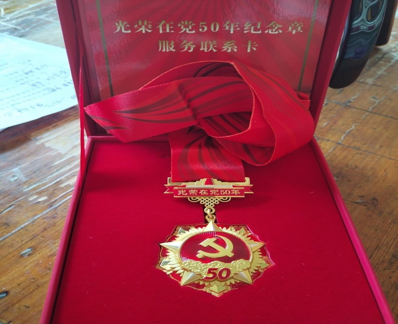讲述完部队的经历后,何老同志在我们的请求下给我们观摩了光荣在当50周年纪念章并为我们讲述起了农村在社会主义发展过程中的变化。他讲道:“让我记忆犹新的便是我任村支书的时候,当时国家要求全面建设电力系统,需要在农村拉起电线。但当时人民群众家家都生活困难,哪里有钱去建设电线呢,为此,我找了好多方法都没有用。最后,我以个人名义,在一个住在我们当地的台湾人那里借了七万块钱用于全村建设电线,让我至今难忘”。老前辈的一席话让我们肃然起敬,不禁对老一辈共产党人始终坚守初心与使命,团结带领广大人民群众锐意进取、艰苦奋斗的精神感到震撼,并纷纷表示要向老前辈学习这种精神。