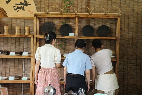 在吴世程老师的带领下,实践团成员先后参观了红领巾小茶园、六堡茶传统工艺制作室和茶艺室,对六堡镇中心校的“茶文化进校园”建设有了一定程度的了解。茶艺室内,吴老师以理论论述为辅,现场演示为主,开展了一场别开生面的茶文化教学。实践团成员通过现场学茶艺、品茶香、论茶道,深刻领悟到推进茶文化与校园文化融合的重要意义。
