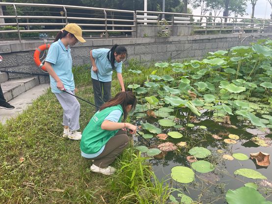 经过对杭州本部分河流的测评,实践团队发现杭州内大部分河水较为清澈,但位于城市中心的河流内有些许的悬浮垃圾,河岸上分布有少量烟头及纸巾等生活垃圾,部分河流内有福寿螺等入侵物种。河流周围生态环境一般,靠近居民区的部分水体有异味且较为浑浊,公园内河流周围生态环境较为良好,有多种鱼类鸟类,河岸周围植物繁茂。