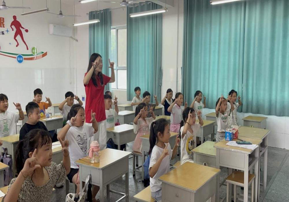 在汝阳县城关镇杨庄小学,支教队员们用爱心播种未来,放飞青春梦想的号召,开展辅导作业课,食品安全宣讲课,书法课,膳食结构培养课,手工课,音乐课,红色观影课,趣味数学课等各式各样的课程丰富学生暑期生活。在平凡的日子里,看到孩子们幸福的脸庞是支教队员们一天中最快乐的事。一间小屋,点燃一个梦想,放飞一份希望。