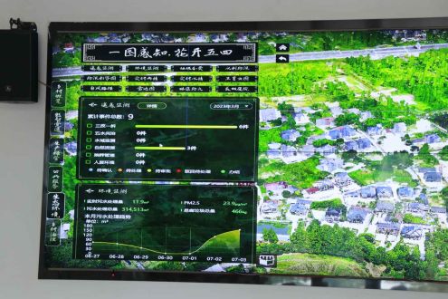 结束与阮书记的会接,实践团在村委会工作人员来到村委会“数字一张图”前观看五四村宣传片,听工作人员讲解,整体了解五四村人口状况、产业现状、治理模式、村务情况、生态环境、党建结构、公共服务等内容。