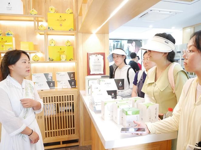 在安吉白茶品牌“极白”的品牌门店,实践团成员见识到了各式白茶礼盒和茶点,透露着精美,也传达出安吉人民的茶文化自信。“极白”作为安吉本地绝对正宗的白茶品牌,目前在江浙沪一带比较出名,但与此同时品牌也正在不断突破,逐渐向外打开市场。