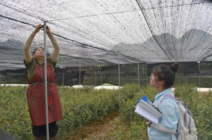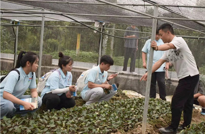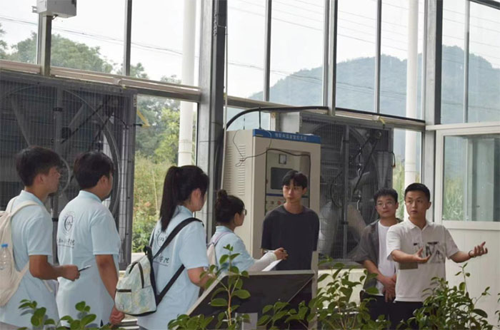 在研究院工作人员的陪同下,实践队成员们前往数据监控中心、育苗基地以及育苗田地里参观学习。从工作人员的介绍中,大家了解到育苗研究院采用科技与人工结合的模式,运用物联网5G智慧进行育苗。园区的工作人员王禹介绍到:“2022年实现销售收入4300万元,2025年育苗收入将突破1亿元,利润超4000万元,研究院目前已培育油茶良种苗1500万多株,规划2025年育苗达2000万株。”研究院在实现经济收益增长的同时,也提供了大量的岗位给附近的村民。研究院工作人员冉峰说:“我们也会招一些附近的居民从事除草、施肥等工作,带领大家共同致富,努力把乡村振兴落到实处”。
