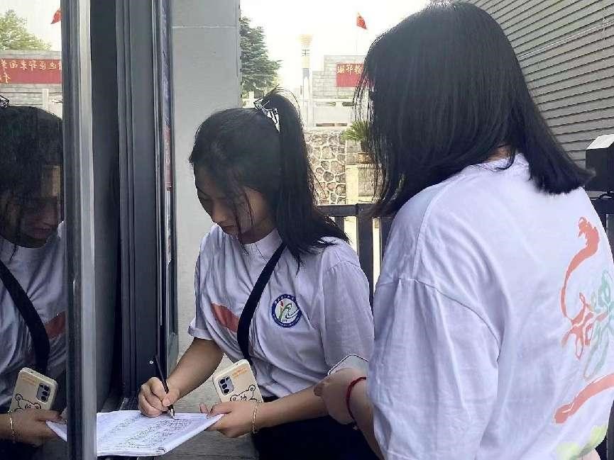 图为实践队员认真研读碑文,了解历史。周雅惠 摄