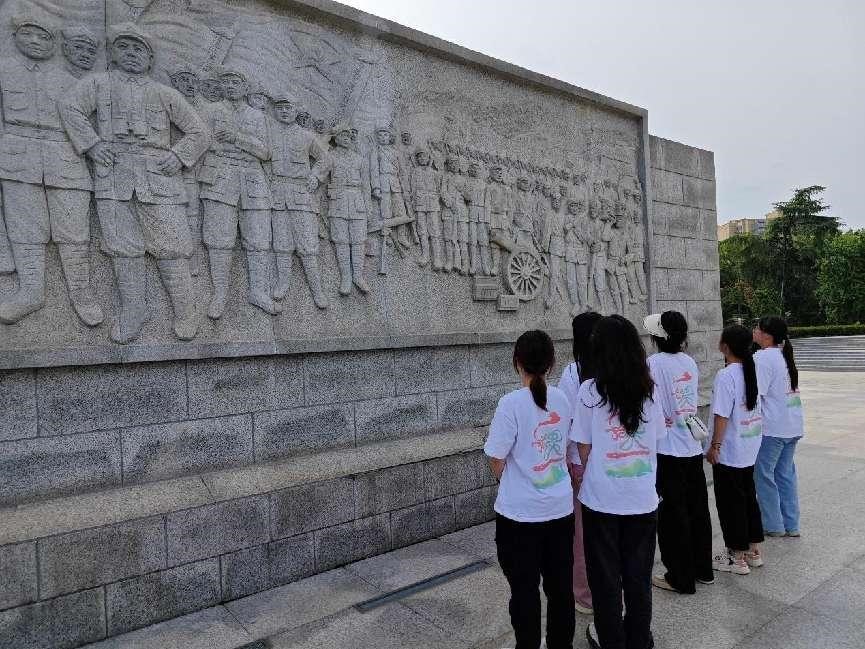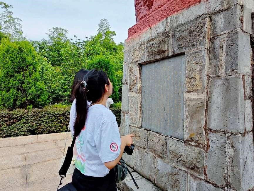图为实践队员仰望纪念碑浮雕,向革命先辈致敬。 周雅惠 摄