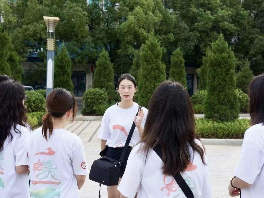 图为拾遗队长在陵园广场向实践队员交代参观事宜。 甘乐 摄