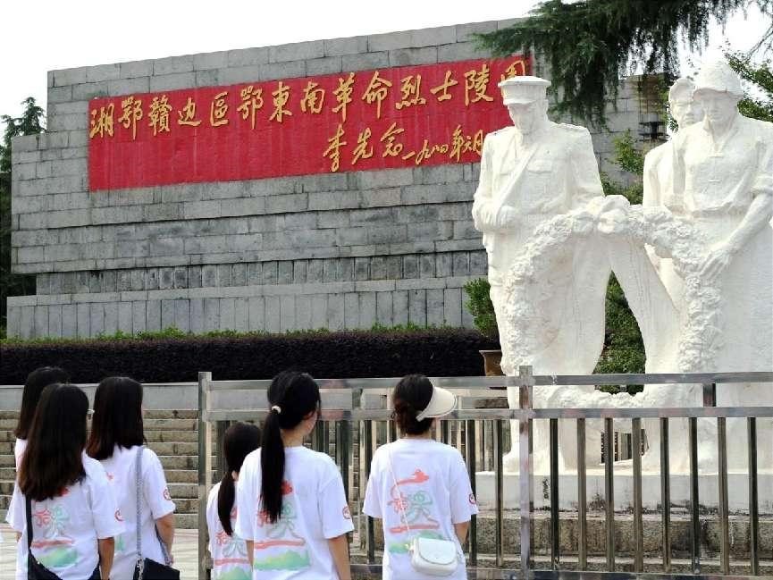 黄石7月24日电(通讯员 周雅惠)为学习传承中国红色文化,发扬红色精神,从优秀的中国红色文化中汲取奋进力量,缅怀先辈英雄事迹,继承先烈遗志,2023年7月23日,湖北第二师范学院经济与管理学院“拾遗”志愿服务队在湖北省黄石市阳新县开展追寻先辈红色足迹实践活动,访问湘鄂赣边区鄂东南革命烈士陵园,学习和了解先辈们的英勇事迹,在烈士纪念碑前悼念先烈,敬畏之情油然而生。