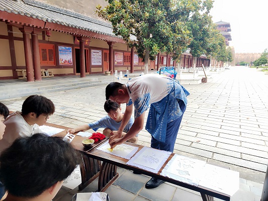 6月30日,湖北第二师范学院“拾遗”暑期三下乡志愿服务队赴襄阳市枣阳县百布堂学习中国传统文化技艺——粗布制作的前两天。为了更好的了解并学习枣阳粗布制作,其非遗传承人刘海伦和刘倩老师向我们介绍了粗布制作的历史及发展,并教我们使用原始的粗布制作工具来纺织布料。随后制作染液,带领实践团成员们学习体验了扎染、型忽染和制作蓝印花布。