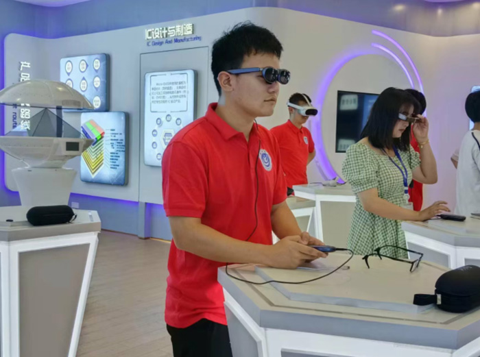 活动伊始,公司负责人韩总、王部长向池州学院的师生们介绍了2023届毕业生入职培训情况,屏幕行业的发展现状、技术要求以及就业机会。活动中,调研团队参观了芜湖熙泰科技公司的显示屏研发成果,在专业的技术人员的讲解下,了解屏幕组装和测试的工艺、学习如何进行屏幕组装,并亲自动手测试屏幕性能。亲身体验了XR产品的神奇与便捷。通过这一实践过程,参与者们不仅增加了对屏幕工艺的了解,还提升了他们的实践技能和团队合作能力。