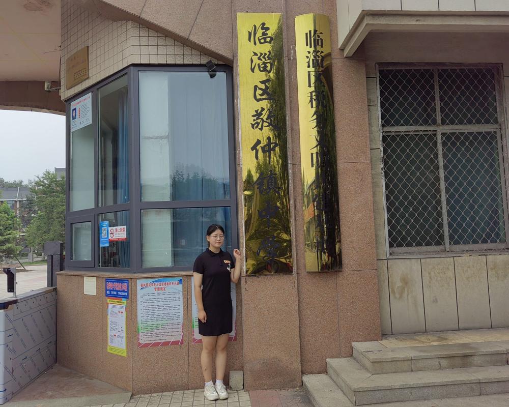 图为实践队员到淄博市临淄区敬仲镇中学实地调研。