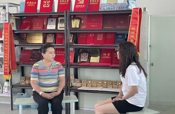 2023年7月17日,石河子大学药学院赴木垒哈萨克自治县社会实践团队前往木垒哈萨克自治县哈依娜尔民族手工艺品制造有限责任公司进行参观,面见了公司创始人赛开尔·胡山,聆听她与公司的故事。