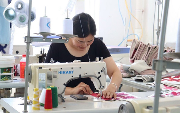 图为公司员工正在进行刺绣工作 高盈盈 摄