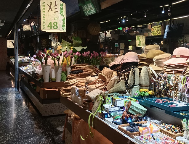 然而,近年来,随着苏州市民对食品质量提出了更高的要求,苏州也出现了越来越多融入商业生态的新型菜市场。有将传统历史底蕴与流量经济结合的网红菜场如葑门横街、双塔市集,也有政府主导改造升级的新型菜场,邻里生鲜市场就是其中一个典型。这些市场与传统菜场有所不同,它们规模巨大,设施齐备,智能化数字化明显,管理规范且隶属于某个综合生态商业体之内。以邻里生鲜市场为例,不同于传统菜市场给人的“脏乱差”的形象,邻里生鲜市场地面更为干净,摊位更为整洁,照明灯光也更加明亮,在宽敞的购物大厅内,陈列着高质量的农产品和进口食材,给人以舒适和现代感,满足了消费者对食品卫生质量和购物体验的需求。并且在邻里生鲜市场这样的新型菜市场消费时,消费者可以享受到包括邻里生鲜在内的整个商业生态带来的高品质服务,诸如品牌餐饮店、理发店、免费图书室,但是相应地也会存在商品价格偏贵,摊位租金偏高等情况。此外,这些新型菜市场当中有不少与当下火热的电商服务结合起来,提供系统的在线订购和配送服务,为忙碌的都市人群提供了极大的便利。特别的是,部分新型菜场在装饰和运营中也会注重文化元素的挖掘,如摆放新颖别致的标语、与艺术家的作品进行联名、介绍与菜场所在街巷名称由来的渊源等,这些烟火气的熊熊点燃不仅使新型菜场别具一格,更具魅力,也满足了消费者对中国传统食文化的精神需求。