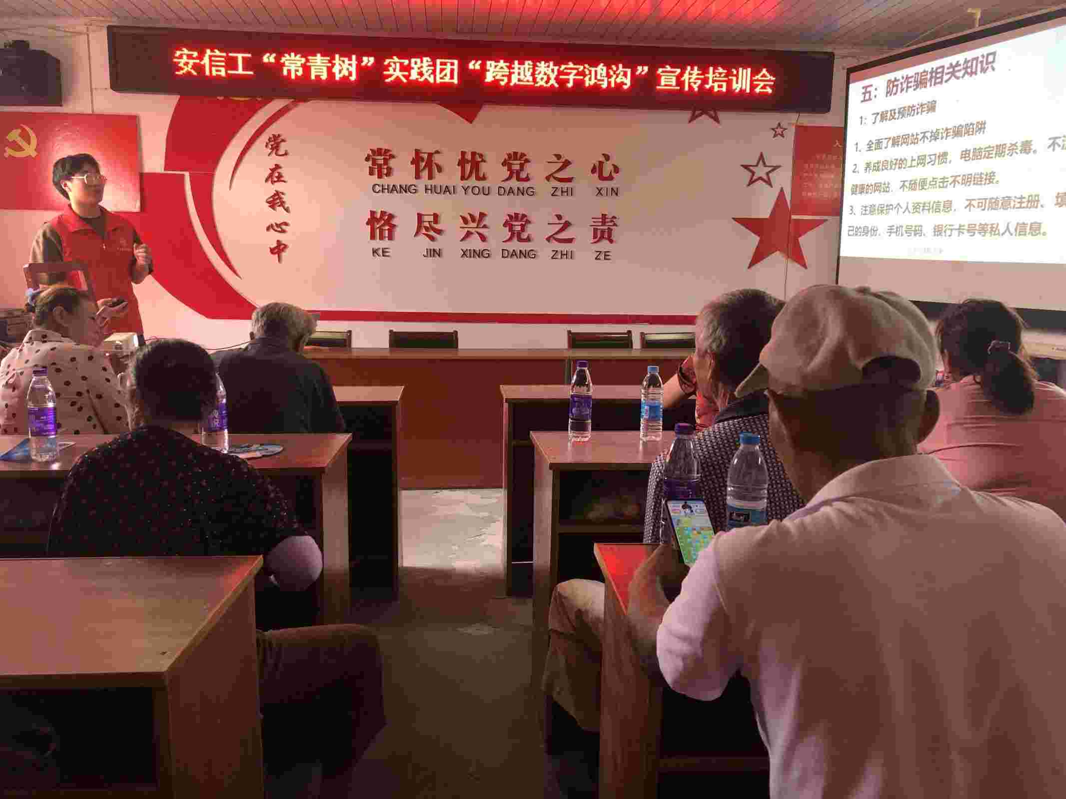 为了让老年群体共享数字化改革成果,化解老年人运用智能技术遇到的“痛点”、“难点”,帮助老年人跨过“数字鸿沟”,提高老年人使用智能手机的安全性及便利性,充分营造老年群体学习使用互联网的氛围,安徽信息工程学院“常青树”暑期三下乡实践团于7月12日前往宣城市泾县丁家桥镇李园村和官庄村开展暑期“三下乡”智慧助老和防诈骗宣讲会,用实际行动助力老年人跨越数字鸿沟。