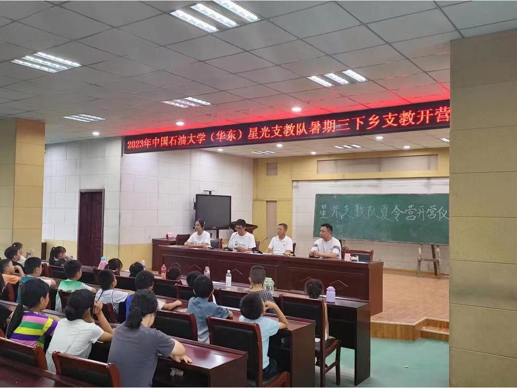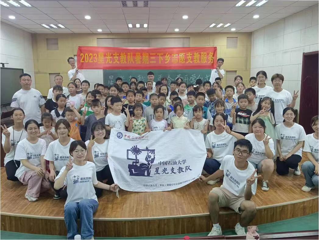 为担负起青年学生对国家民族的使命,发扬服务奉献精神,为乡村的孩子带来快乐和温暖,由中国石油大学(华东)文法学院、经济管理学院、理学院等多个学院组成的星光支教队响应号召,于2023年7月31日安全抵达山东省菏泽曹县育英中学,将在这里开展两周的支教活动。