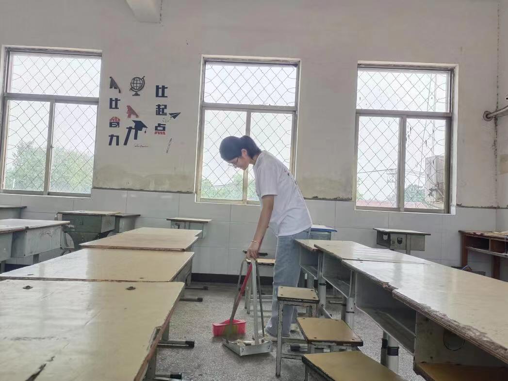 7月31日,支教队成员在育英中学的校长及老师的带领下安置行李,熟悉环境。8月1日上午,支教队成员来到即将要开展支教活动的教室擦桌子、扫垃圾、擦黑板、搬动桌椅,在支教队成员的共同努力下,教室焕然一新,为即将到来的学生提供了良好的学习环境。与此同时,支教队成员前往颜庄、周楼、祝庄等村庄的村委会,联系沟通招生的相关事宜。从8月1日下午到8月2日上午,许多村庄的家长带着孩子来到育英中学的报名处,踊跃报名。