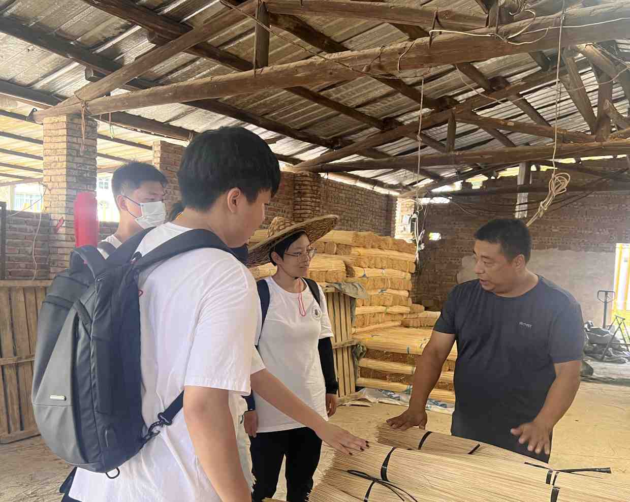 在交谈过程中,邱厂长根据自己多年的竹产品生产经验说出了自己目前所遇到的问题:现代工艺无法完全代替人工,并且先进的现代设备不但价格贵,同时还需要专业技术人员的操控,但是村里又缺少这样的人才。