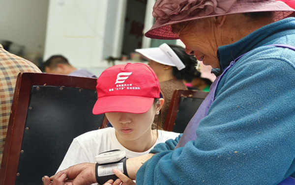 每当到了科普的村庄里,志愿者们按部就班,先让自愿来参加的村民们填签到表,完后向居民们介绍了检测血压的重要性,以及测量血压的正确步骤。居民们积极参与,我们为他们提供了测量血压的设备,让每个人都能亲自体验。同时给一些中老年人回答他们问的疑问,并科普了有关必回健康科学的饮食习惯的常识。