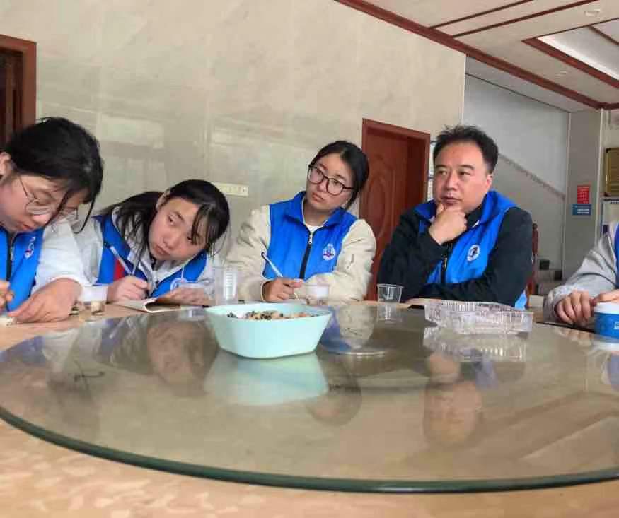 图为促进团成员在对当地社区书记进行访谈时认真做记录 彭雨欣 摄