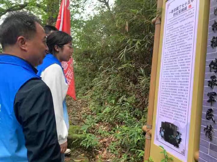 图为促进团成员在老山界了解当地红色故事 彭雨欣 摄