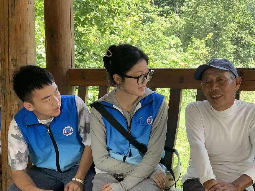 图为促进团成员采访游二爷的后辈 杨茁青 摄