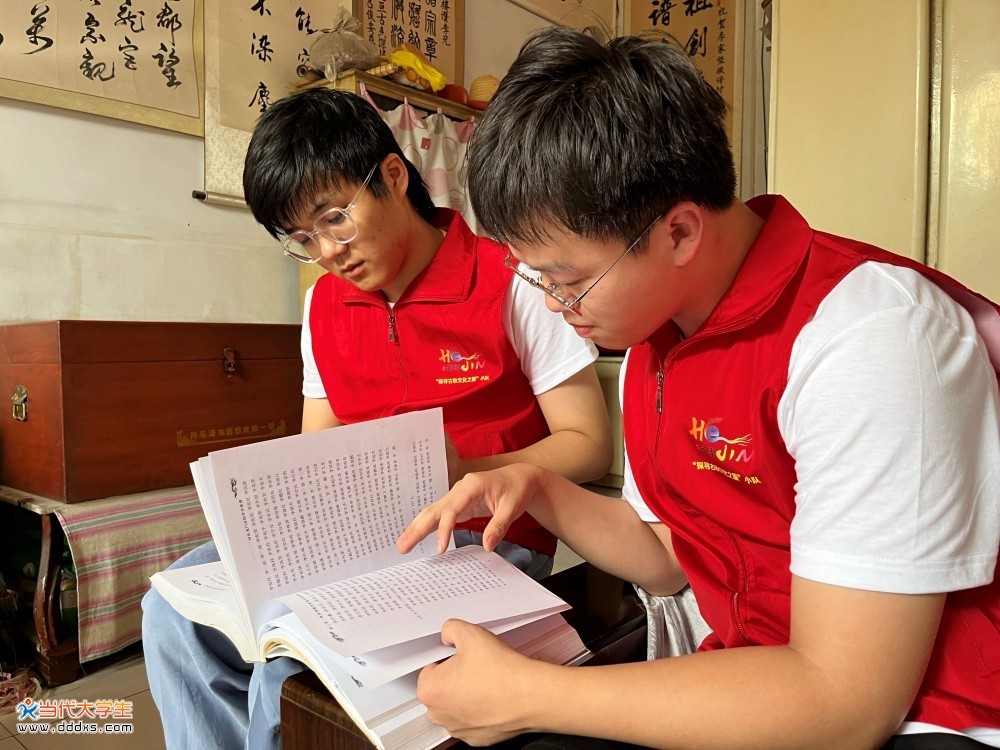 团队成员仔细翻阅《河津转花灯》