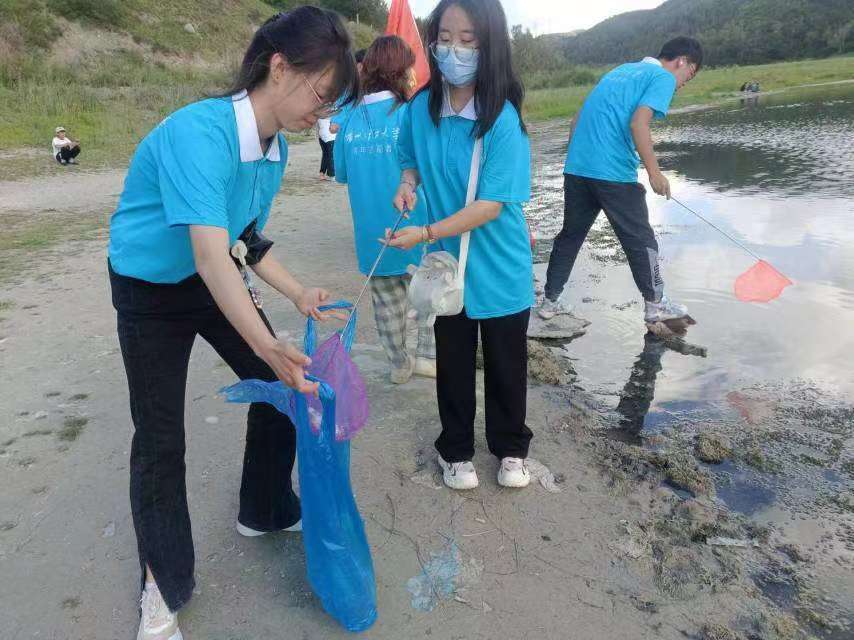 图为实践服务队员清理西海子垃圾。李学东 供图
