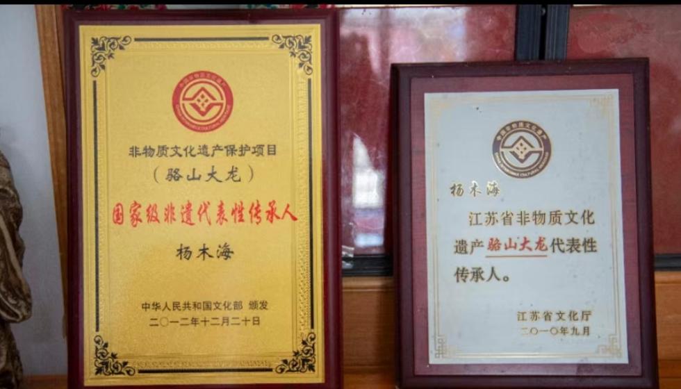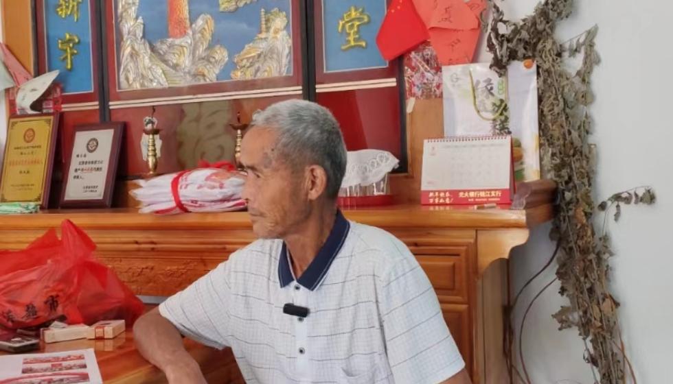 在村长与村支书的帮助下,团队有幸见到了骆山大龙传承人、龙委会会长杨木海老先生。杨木海老爷爷和蔼可亲,非常热情地接受团队的采访。在对谈中团队得知杨木海老爷爷已经77岁,但仍参与舞龙,致力于推广舞龙,岁月并没有磨灭他对“骆山大龙”的热爱。正是因为有无数像杨木海老爷爷一样的非遗传承人,今天的人民群众才有机会看到如此多灿烂辉煌的非物质文化遗产!