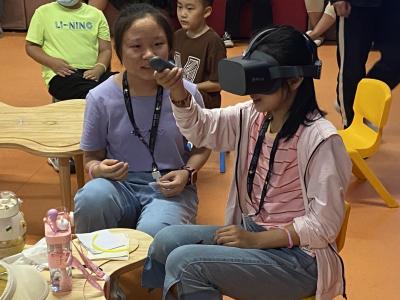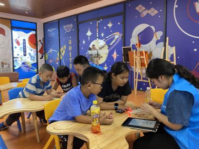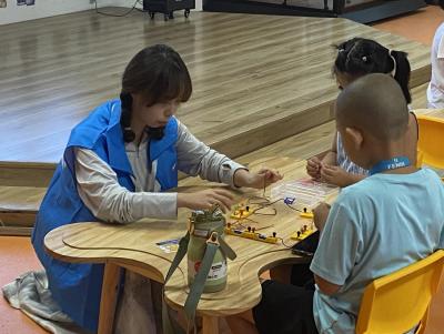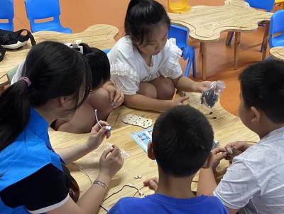 博物馆奇幻夜志愿者带领小朋友进行电路的连接