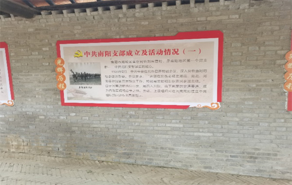 位于南阳市宛城区刘宋营村的中共南阳第一党支部旧址,是一幢具有悠久历史的建筑。步入这里,仿佛回到了上世纪初的那段岁月。走进旧址,我们被一面巨大的红旗所吸引,那是党的旗帜,一直高高飘扬,显得威严而坚定。我们被引导到了一个陈列室,里面陈列着当年党支部的文物、照片和文件,每一件展品都透露着悠久的历史和奋斗的痕迹。照片中的党员们严肃的表情,让我感受到他们当年的坚定信念和牺牲精神。墙上悬挂着一幅幅珍贵的历史照片,记录了当年党的先驱们为国家民族的解放事业所作出的不懈努力。在老党员的的生动讲解下,我们了解到,中共南阳第一党支部旧址曾是当年党的早期活动基地之一。在这里,党的先驱们秘密开展组织工作,商讨策略,为中国革命的胜利奠定了坚实基础。逼真的描述让我们仿佛置身于当年的情景中,更加感受到革命先烈们的无私奉献精神。参观过程中我们了解了南阳第一党支部旧址从创建到发展的艰辛历程,认真观看了革命先烈们的珍贵遗物,感受到了那个艰苦卓绝的时代,也对党的初心和使命有了更加深刻的认识。