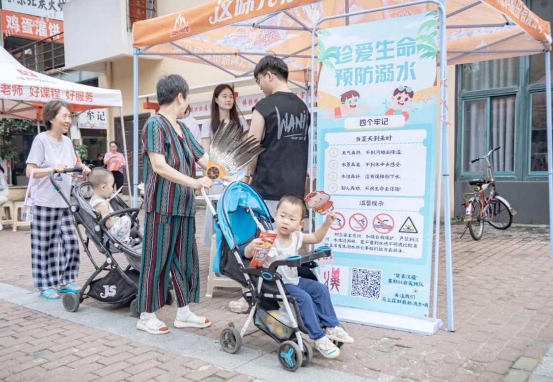 夏季是溺水事故的多发季节,为提升居民防溺水意识,2023年7月3日,湖北第二师范学院楚音汉蕴暑期实践队前往湖口社区进行摆点宣传,通过