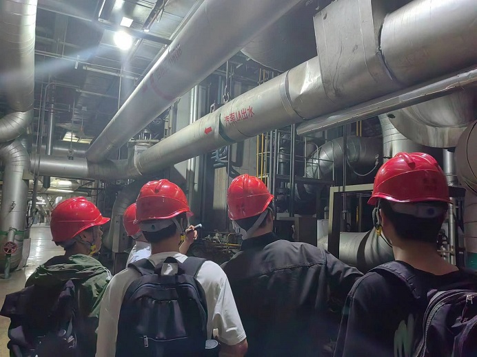 8月3号至8月11号。队伍同电厂的管理人员交流,于是同意在工作人员的带领下对发电过程进行躬行了解。队伍由一扇厚重的铁门进入发电区域,一股刺鼻的味道瞬间传入每个人的鼻腔,但队伍中没有被其影响,反而每个人的目光被里面巨大的机器所吸引,机器的轰鸣声格外地影响工作人员的解说,但不影响五人小队对流程的兴致,都聚集在解说的周围,一边对着专业仪器进行拍摄,一边吸取着相关的专业知识,在工作人员的讲解内容中,始终没有离开能源的发展与中国的双碳目标的结合,而这将贯彻并影响团队在参观过程中产生的观念。维持九天的参观,从燃烧系统到汽水系统,最后再到电气系统,从一楼到达足有64米高的最高层,每一个点无一不是从能源动力的专业知识到能源发电的实际应用,容易接受的知识点让团队直接了解了其中的发电原理。参观的途中,陆陆续续地见到了一些检查仪器的专业工作人员,通过观察他们的操作让团队直接了解并感受到了其中工作人员的工作环境。随着参观的进行,参观团队从由铁架子制造而成的平台与楼梯不断上升,镂空的平台减少了制造的成本与支撑的重量,但身处其上,不由得心生恐惧。这九天的活动,在介绍人员的悉心带领与介绍下,团队对电厂的了解实践活动十分圆满地结束。