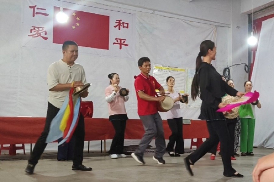 期间队员采访了一些问题,了解到花鼓灯舞蹈的重要地位——“花鼓灯舞蹈是中国传统的民间舞蹈形式之一,与古代农民生活密切相关。它起源于中国北方的农村地区,最早是农民在农闲时节用花鼓和灯笼进行娱乐活动。舞蹈中的动作和节奏都与农民生活息息相关,表现了劳动、丰收、欢乐等主题。”