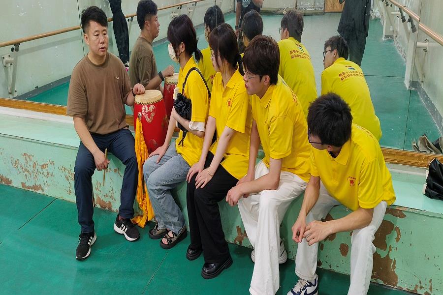 随后冯开唐老师带领队员们观看了他们的日常排练项目,向队员展示了一段花鼓灯舞蹈,并在最后教会实践队员一些花鼓灯的基本动作,让他们亲身感受花鼓灯舞蹈的乐趣。