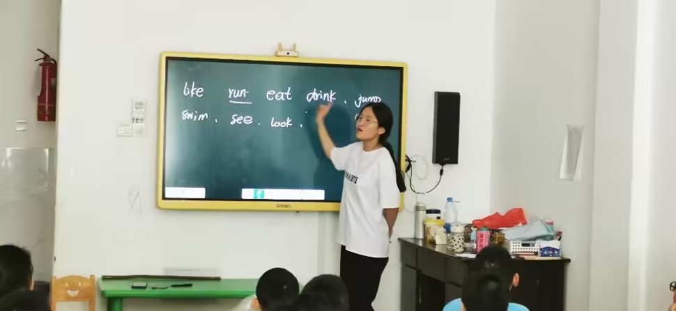 “run、swim......”小小的单词汇聚大大的智慧,从简单的A、B、C、D到复杂的英语单词,每一次课程中,讲义的不单单是英语,更是对他们多元发展的开发教育。让这些孩子从心理和学习走出大山,扩宽视野,对接世界。