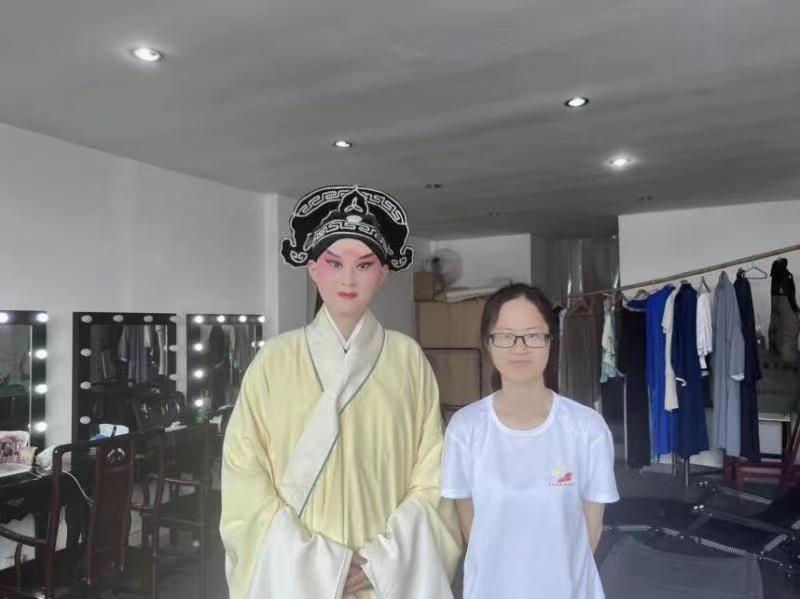 表演结束后,团队成员来到后台,采访了两位演员。其中,饰演杜丽娘的是邹美玲,饰演柳梦梅的是黄朱雨,他们都是来自昆山当代昆剧院的优秀青年演员,表演功底深厚,甚至一举一动都带着昆曲那种不紧不慢,风流内蕴,给人一种人即是景,人即是物的感觉。
