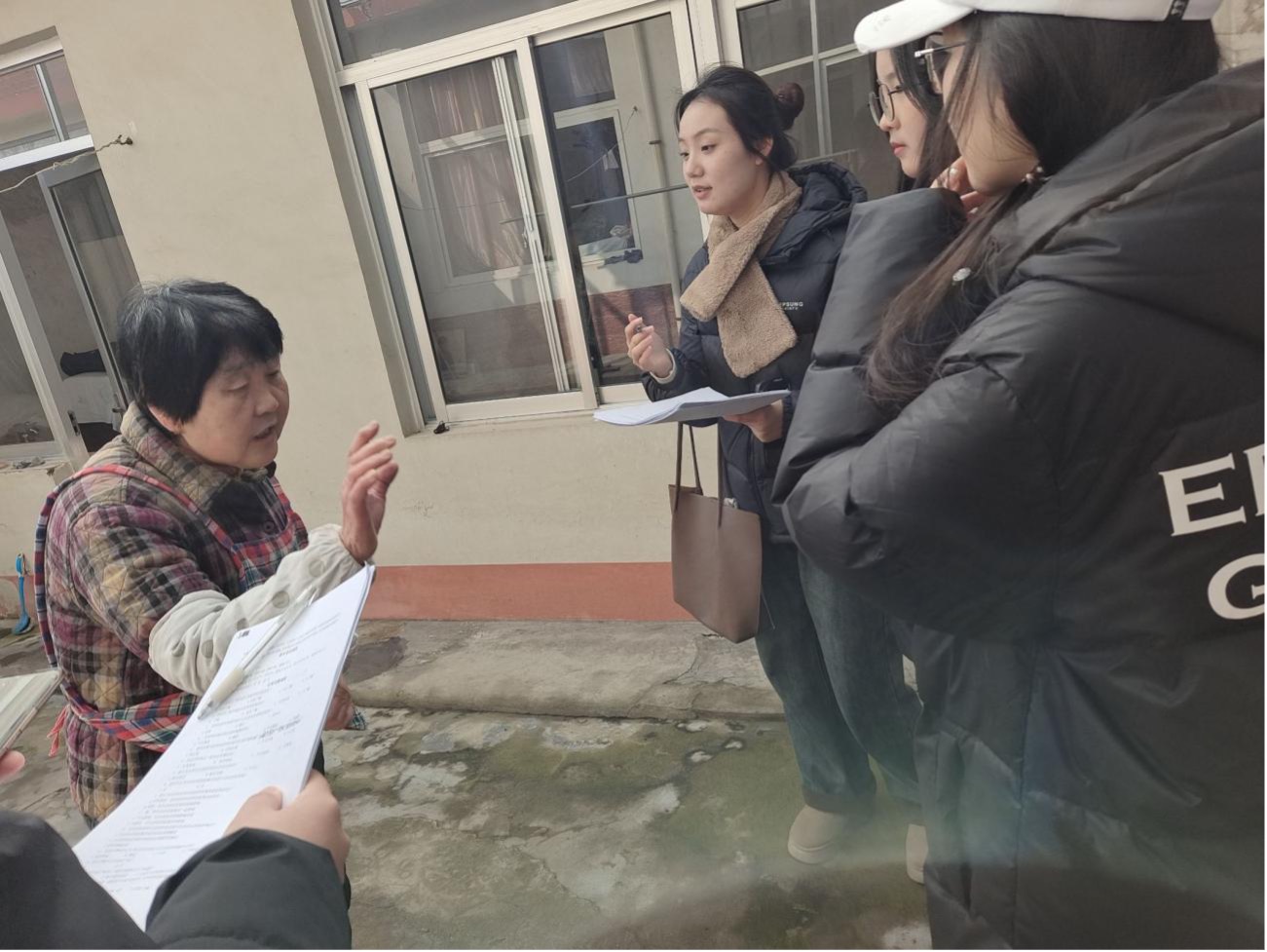 图为实践队队员在采访当地村民。
