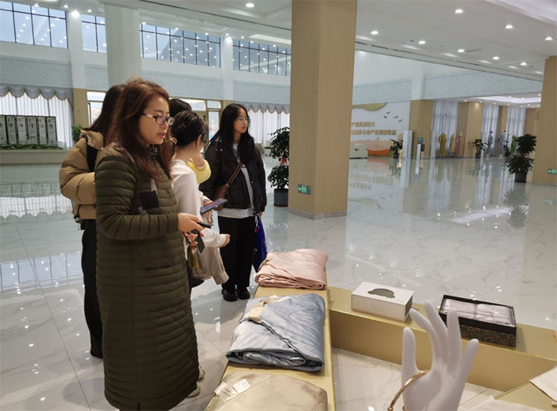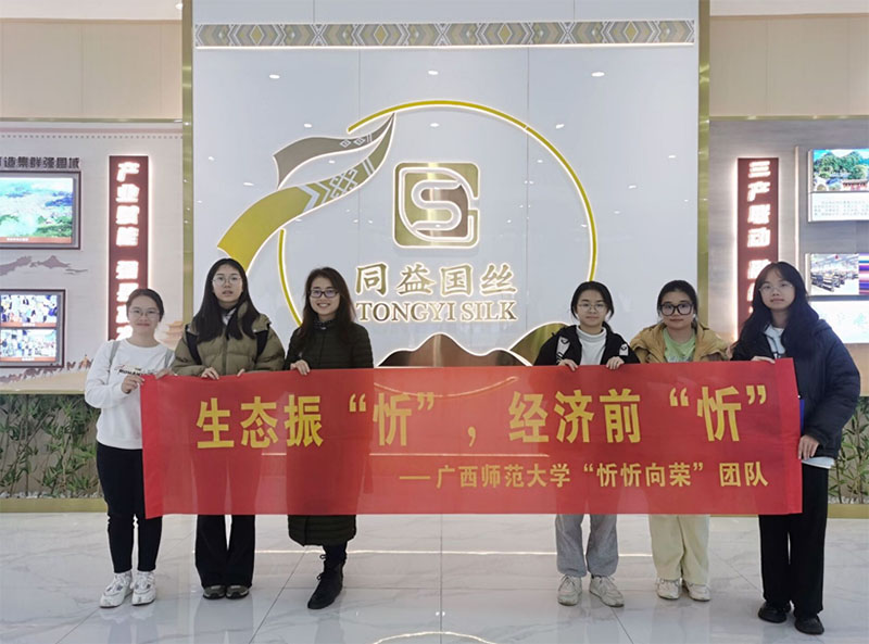 为了更加深入了解忻城县桑蚕产业的发展情况,广西师范大学马克思主义学院“忻忻向荣”团队成员来到了粤桂协作三江口(忻城)茧丝绸产业园。在这里,我们跟随接待人参观了产业园的规划布局图、展览大厅、工作间等,在接待人的讲述中,我们了解到该县地处滇桂黔石漠化片区,面临着“九分石头一分土”的现实,石漠化情况较为严重,生态脆弱,老百姓缺乏致富增收主导产业,贫困发生率较高。但该县一直积极致力于探索石漠化地区绿色高效蚕桑产业关键技术,为更好满足桑蚕产业发展的环境要求,重拳治理污染,取缔污染企业,破解传统技艺规模小、成效低、污染大等难题。
