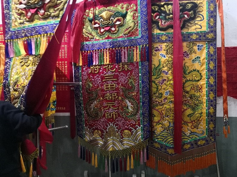 游行开始时,队伍成员跟随着队伍在村间小路上行进。整个游神的队伍,就像是一条五彩斑斓的巨龙,蜿蜒在乡村之间。