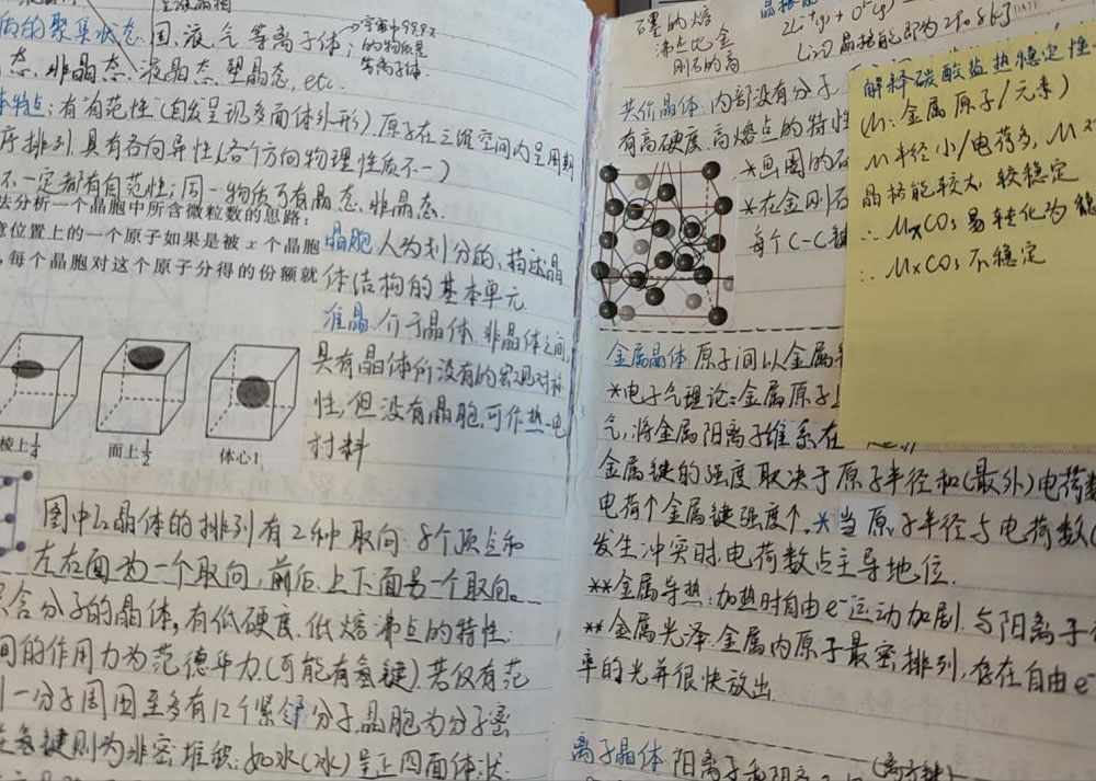 对于做笔记的问题,陈虹宇说,化学知识点非常稀碎,不容易记忆,也不容易串起来;此外,很多概念,如同位素、同系物、同素异形体等,非常容易混淆。因此,老师介绍了分区块整理笔记的方法,将知识点分为实验专题、中国古代化学等专题,解决了知识点记不住的问题;此外,尤其要注意对基础概念的记忆,最最基本的地方容不得丝毫马虎。