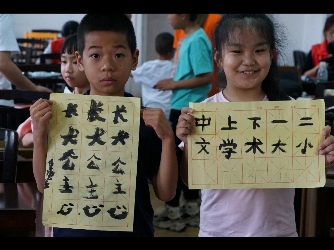 首先映入眼帘的,是一面鲜艳的红旗,它在微风中轻轻飘动,仿佛在向孩子们招手,呼唤着他们去探索红旗背后的深刻意义。紧接着,课桌上摆放整齐的笔墨纸砚,散发着淡淡的墨香,仿佛在邀请孩子们一同走进书法那博大精深的世界。而一旁五颜六色的手工材料,正迫不及待地等待着孩子们用灵巧的双手将它们变成精美的作品。