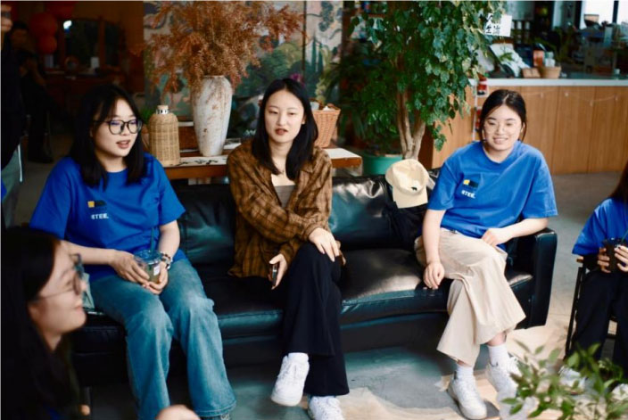 团队成员在“老厂房”咖啡馆于青年创客交流 徐源摄