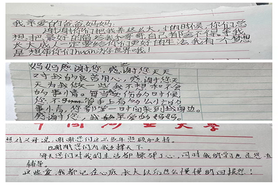 实践团成员根据学生的信件察觉到学生心理上存在一定显著的问题。于是在第一次课程结束后,实践团成员立即与学生父母取得联系,如实反馈孩子们的心声。同时,与家长深入交流,获取了家长为孩子录制的充满关爱与鼓励的视频。